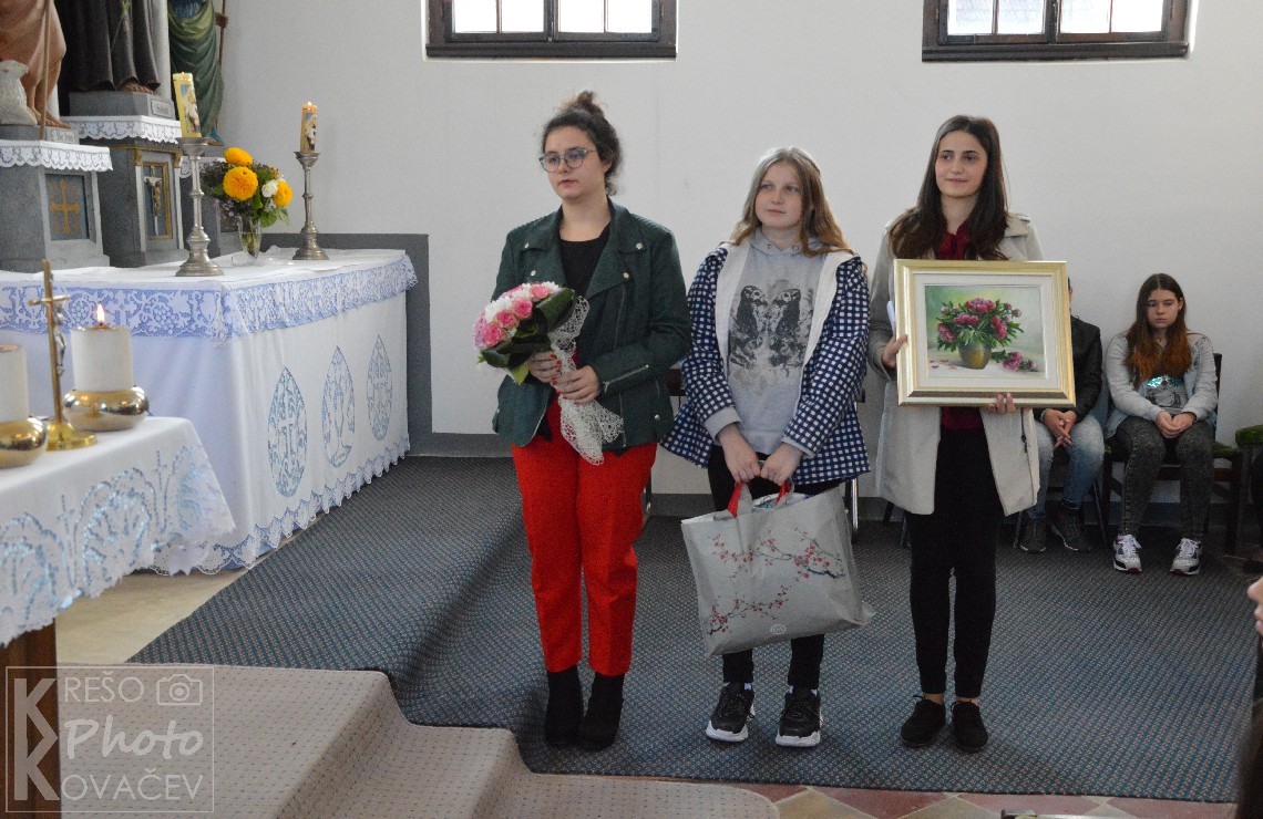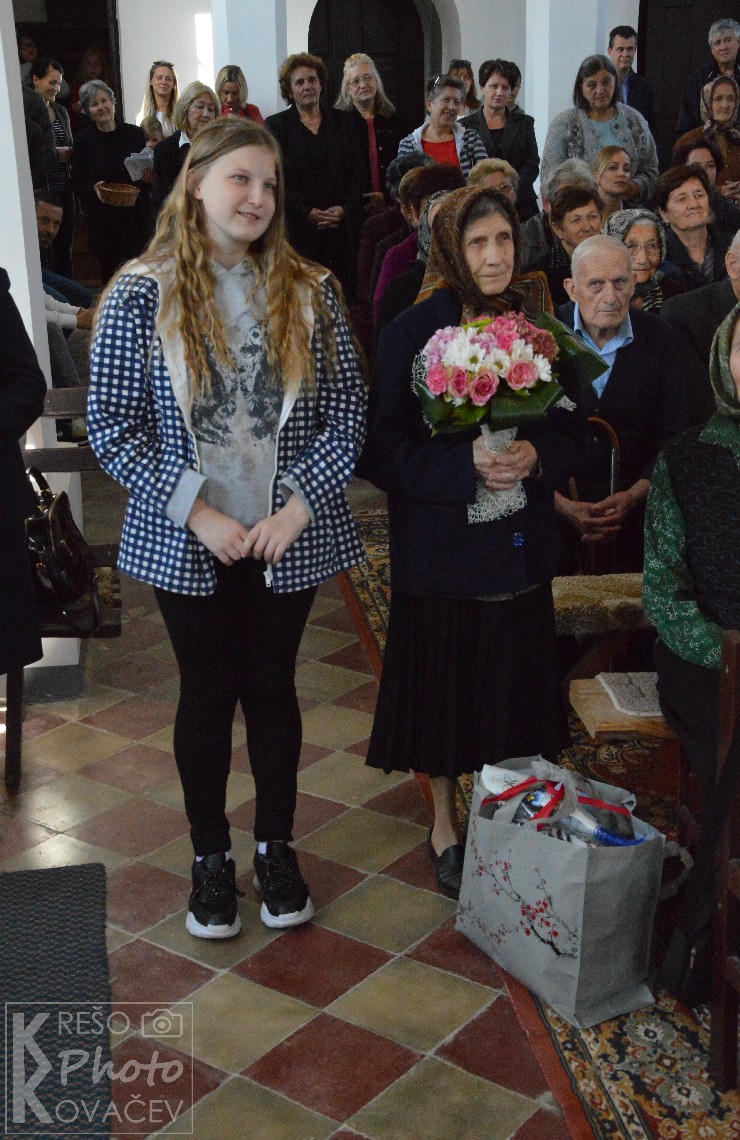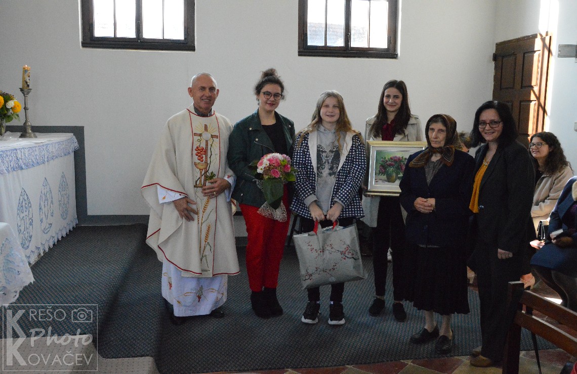 Buduči da godine nose svoje i ne dopuštju više snagu za nastavak služenja župnoj zajednici preko kuhanja na župnom dvoru, mi ti od srca zahvljujemo na svemu darovanomu. I želimo ti da dugo budeš među nama. Sada češ se moči posvetiti tijekom velikih slavlja i župnih proštenja onom drugom djelu Isusove rečenice samo je jedno potrebno. Moči češ više moliti i sudjelovati u svečanim svetim misama koje si prije morala propuštati. Za sve ove godine reći jedno hvala je malo. Nek ti dragi Bog uzvrati za sve dobro, a ova umjetnička slika koju ti darujemo znak je naše ljudske zahvalnosti, u ime župnika i cjele župne zajednice i svih onih koji su probali tvoja fina jela. Hvala i živjela nam blagoslovljena još puno godina.