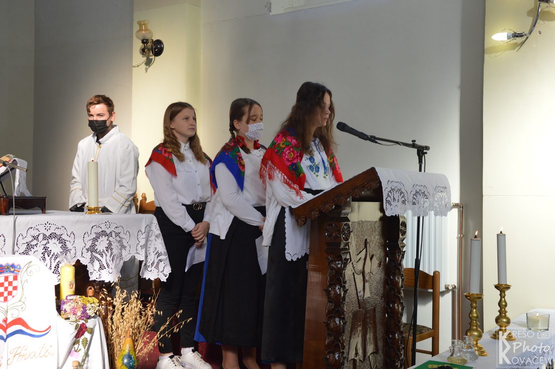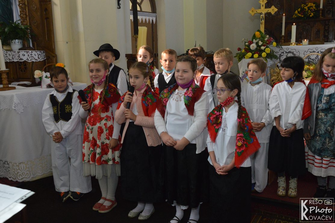 Cijela proslava bila je vrlo svečana; djeca, učiteljice, učitelj i mame u narodnim nošnjama, kruh i mnoštvo plodova zemlje ispred oltarskog stola koje su aranžirale Gabriela i Marina Barberic te osjećaj zahvalnosti i Božjeg blagoslova.