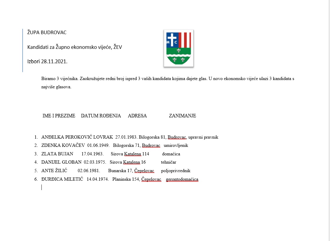 Kandidati za Župno ekonomsko vijeće, ŽEV