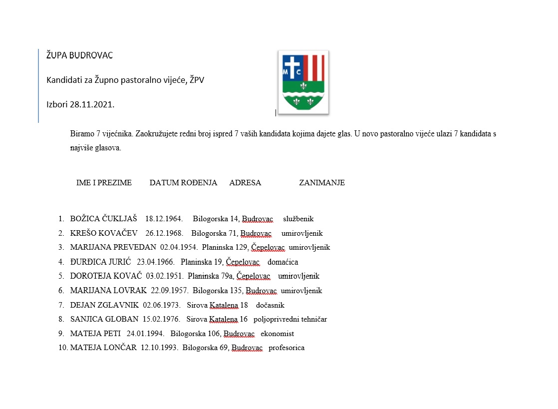 Kandidati za Župno pastoralno vijeće, ŽPV