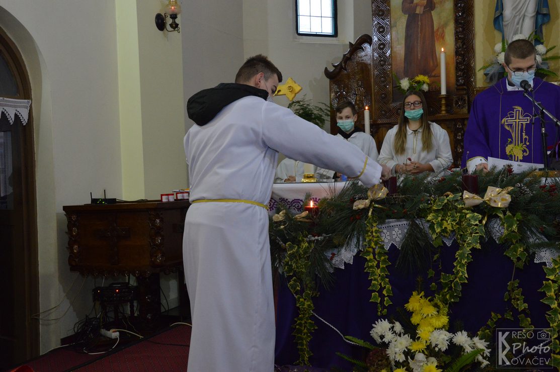 Misno slavlje započelo je paljenjem druge adventske svijeće, svijeće spasenja uz koju se molilo Stvoritelja da otvorimo život kako bi naša svijeća rasla. Župnik je u propovijedi ponovio da je došašće vrijeme rada na sebi kako bismo se promijenili na bolje te bili dostojni doći na misu na Božić. Predstavljeni su kandidati prvopričesnici i krizmanici koji su sa „evo me“ obećali biti spremni pobožno činiti, učiti o vjeri i živjeti vjeru te tako zaslužiti pristupiti sakramentu. Kandidati za prvu svetu ispovijed i prvu svetu pričest: Marta Kaić, Luka Balen, Mato Marjanović, Damjan Šokec, Tin Špoljarić, Dominik Žilić. Kandidati za svetu potvrdu: Melani Vinković, Mia Pleško, Lana Čorba, Matej Šokec, Florijan Axel Stankić, Martina Megec, Ana Gavrić, Marija Karlović, Tino Mihočka, Antonio Vrabec, Elina Barjektarević, Mihael Zglavnik i Robert Tomrlin. Na kraju mise sv. Nikola razveselio je prisutnu djecu malim poklonima.
