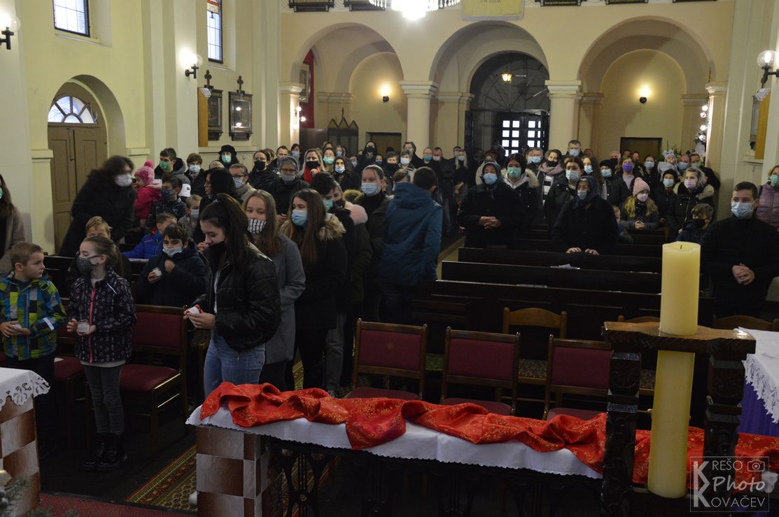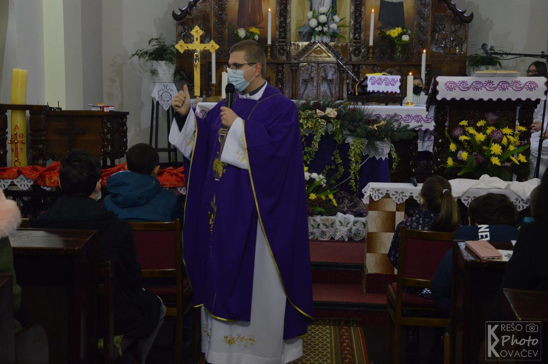 Misno slavlje započelo je paljenjem druge adventske svijeće, svijeće spasenja uz koju se molilo Stvoritelja da otvorimo život kako bi naša svijeća rasla. Župnik je u propovijedi ponovio da je došašće vrijeme rada na sebi kako bismo se promijenili na bolje te bili dostojni doći na misu na Božić. Predstavljeni su kandidati prvopričesnici i krizmanici koji su sa „evo me“ obećali biti spremni pobožno činiti, učiti o vjeri i živjeti vjeru te tako zaslužiti pristupiti sakramentu. Kandidati za prvu svetu ispovijed i prvu svetu pričest: Marta Kaić, Luka Balen, Mato Marjanović, Damjan Šokec, Tin Špoljarić, Dominik Žilić. Kandidati za svetu potvrdu: Melani Vinković, Mia Pleško, Lana Čorba, Matej Šokec, Florijan Axel Stankić, Martina Megec, Ana Gavrić, Marija Karlović, Tino Mihočka, Antonio Vrabec, Elina Barjektarević, Mihael Zglavnik i Robert Tomrlin. Na kraju mise sv. Nikola razveselio je prisutnu djecu malim poklonima.
