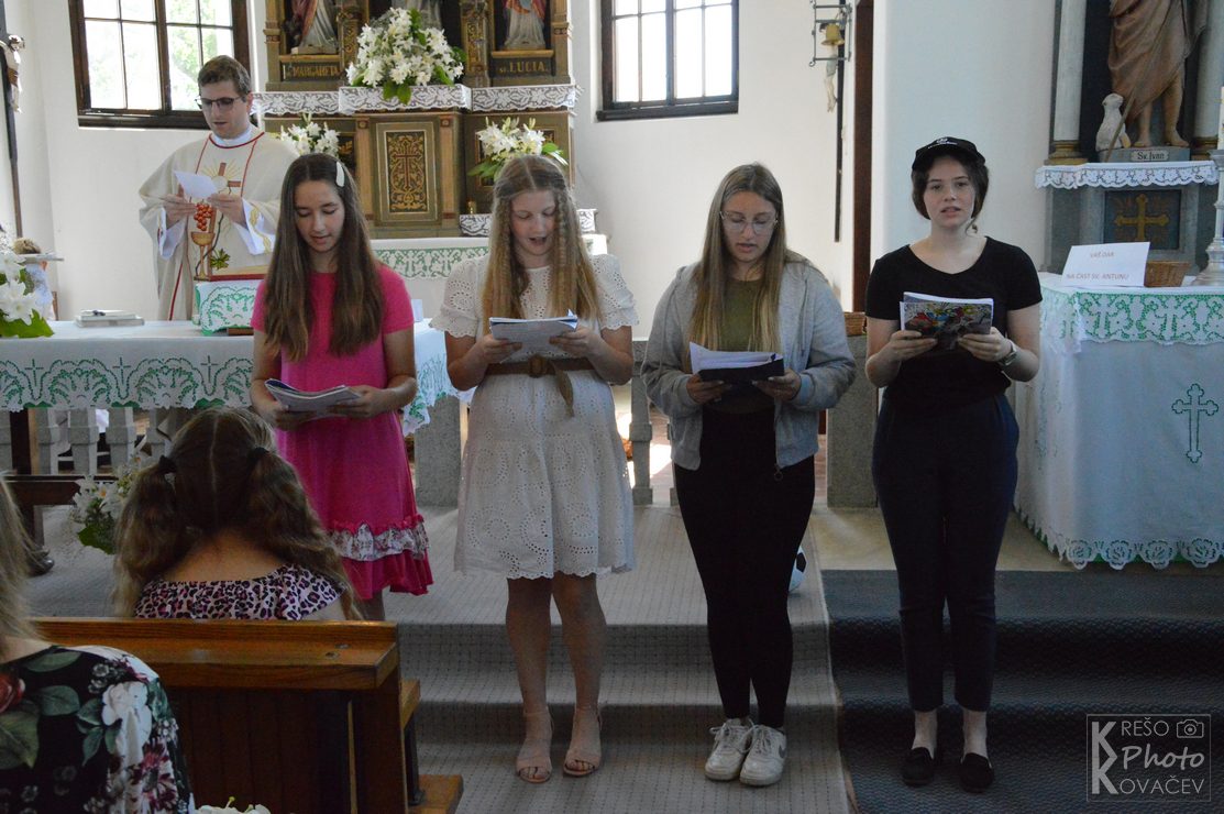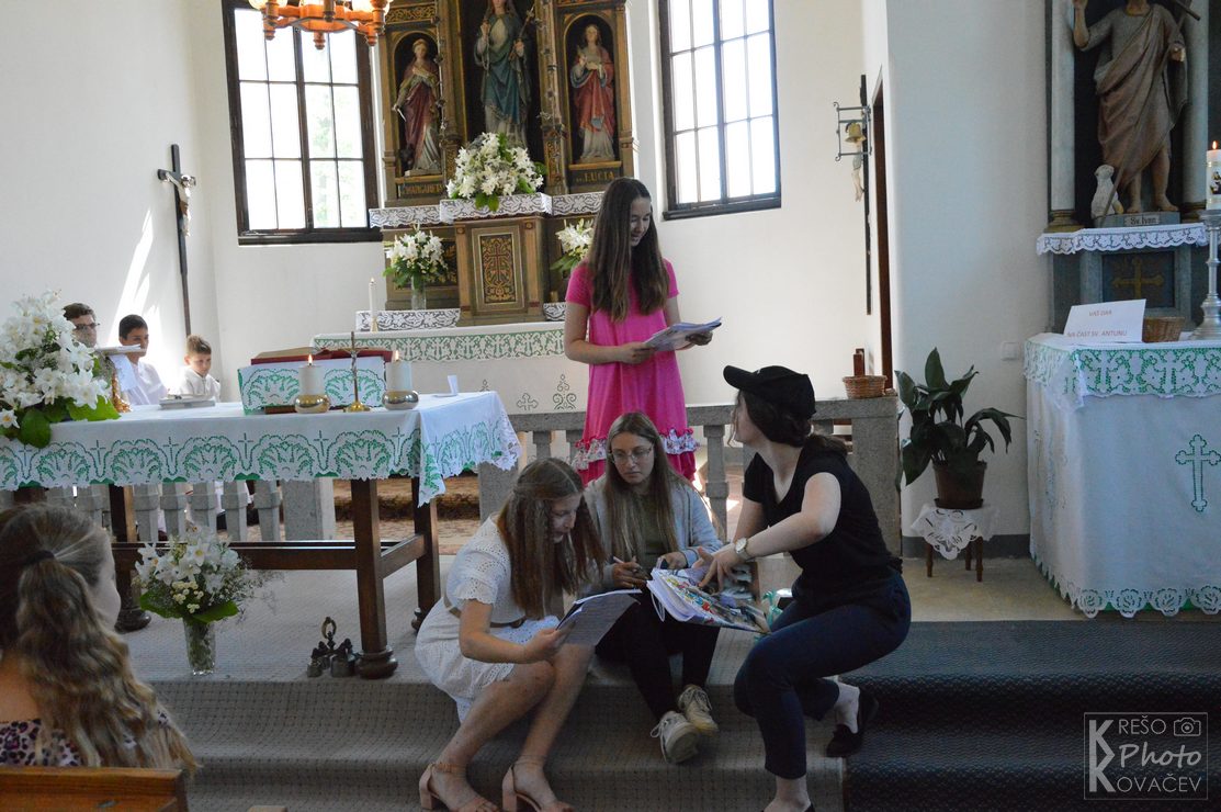 Vjeroučiteljica Marina s vjeroučenicima je pripremila prekrasnu molitvu vjernika i na kraju mise kratki skeč o sv. Antunu prisjetivši okupljene vjernike o širini njegove zaštite.