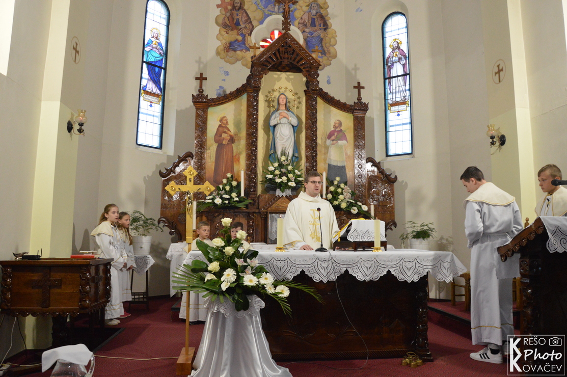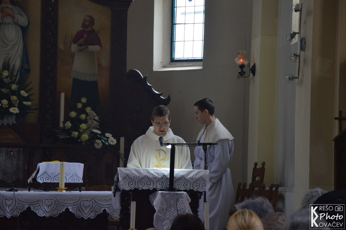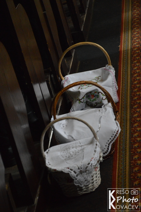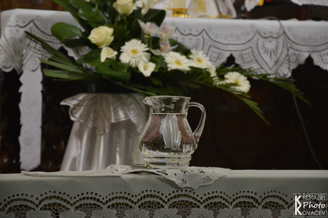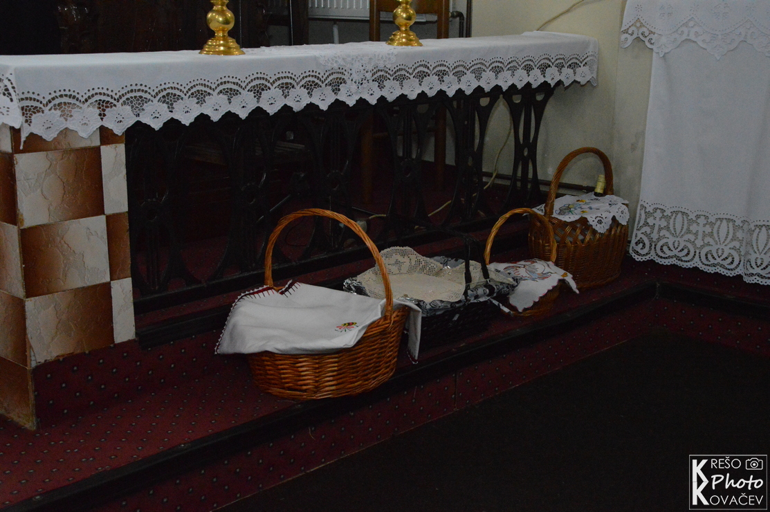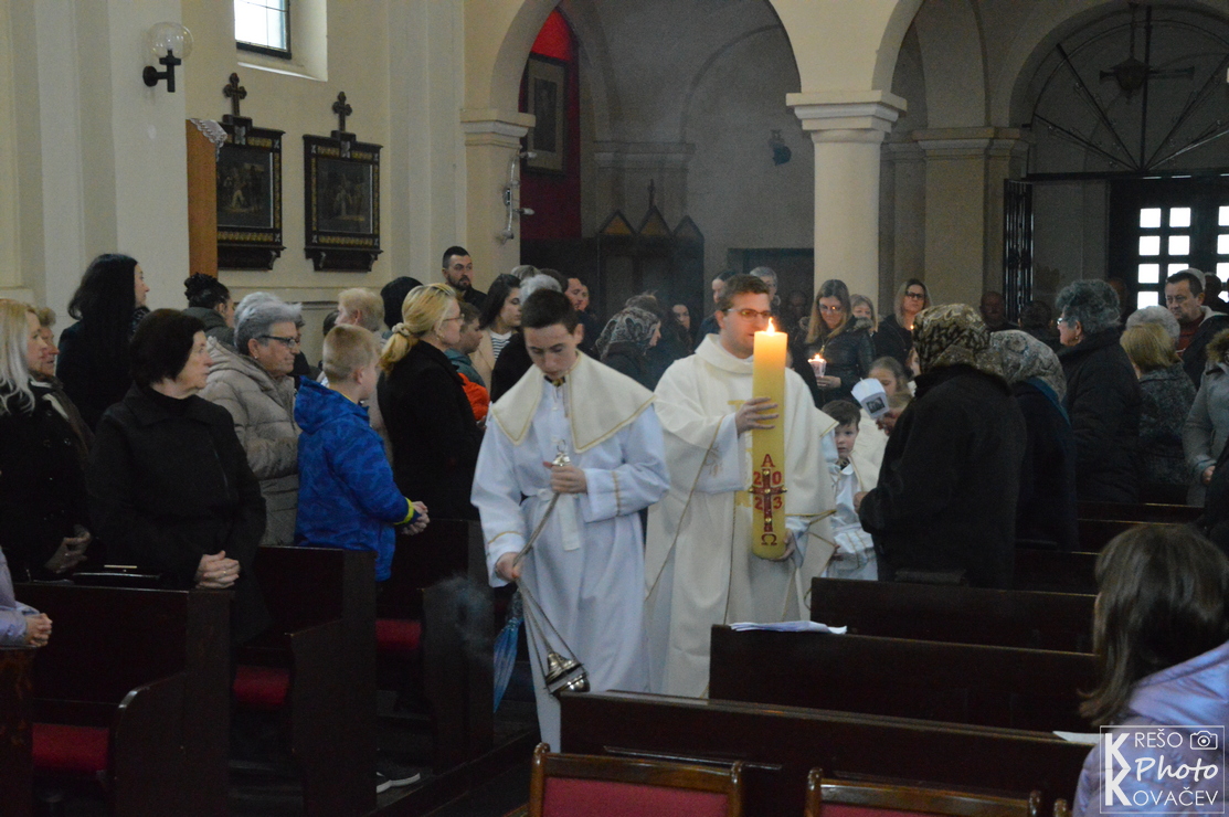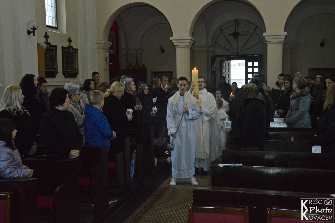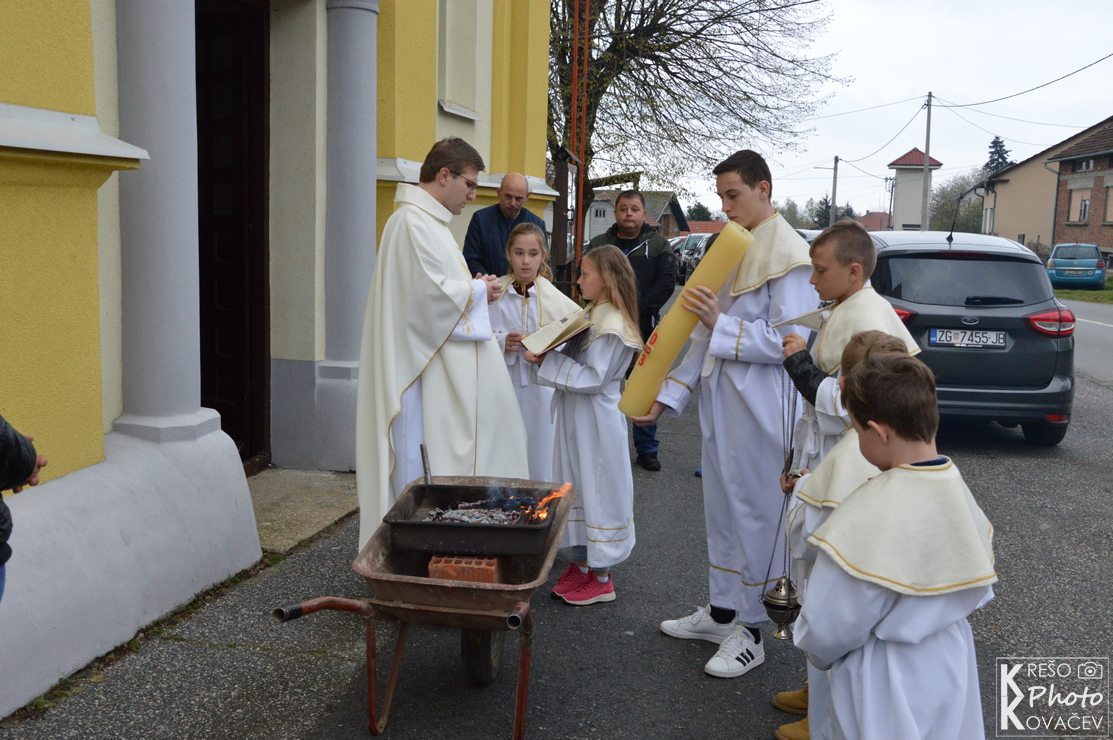 Svečanost Velike subote, u našoj župi, u jutarnjim je satima započela izlaganjem Presvetoga na pokrajnjem oltaru. Kroz cijeli dan mnoštvo je ljudi posjećivalo i bdjelo nad Isusovim grobom u župnoj crkvi. Večernji su obredi počeli u 18:00 službom svjetla, ispred crkve župnik je blagoslovio oganj i na njemu zapalio krsnu svijeću koju su unijeli u crkvu i proširili svjetlo Kristovo na svijeće vjernika. Nakon toga uslijedila je služba riječi koja je završila pjesmom Slava Bogu na visini s kojom su se upalila svjetla, svijeće i orgulje. Nakon krsne službe, gdje je župnik blagoslovio vodu i obnovili smo krsna obećanja, uslijedila je euharistija. Pred kraj mise blagoslovljena je hrana, cilj je blagoslova zahvaliti se na onome što smo donijeli u košari i na svemu onome što imamo. Blagoslovljena hrana tradicionalno se konzumira na večeri poslije mise i na Uskršnje jutro.