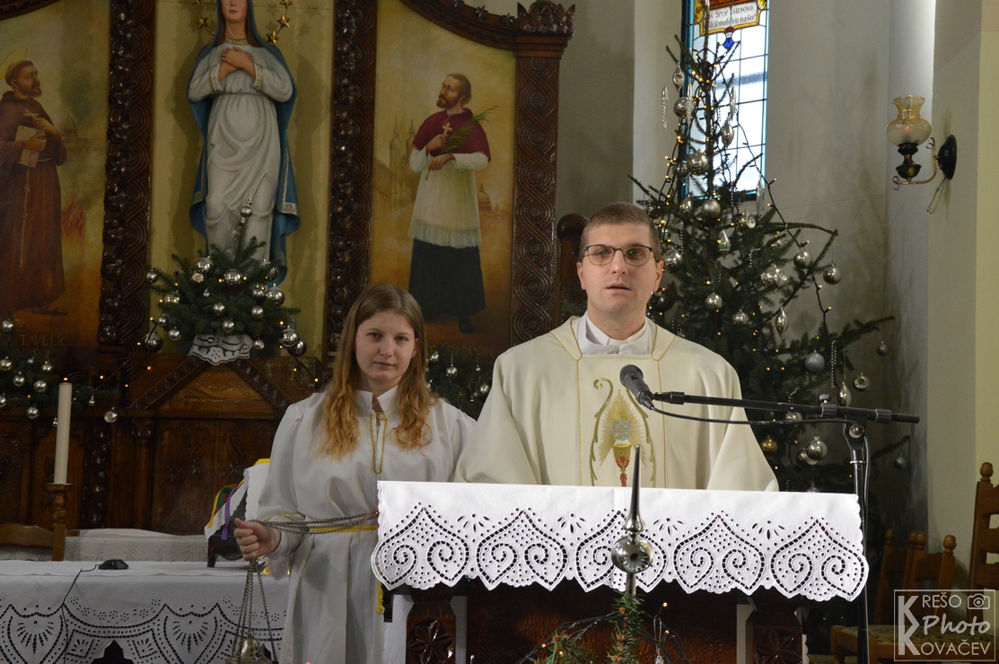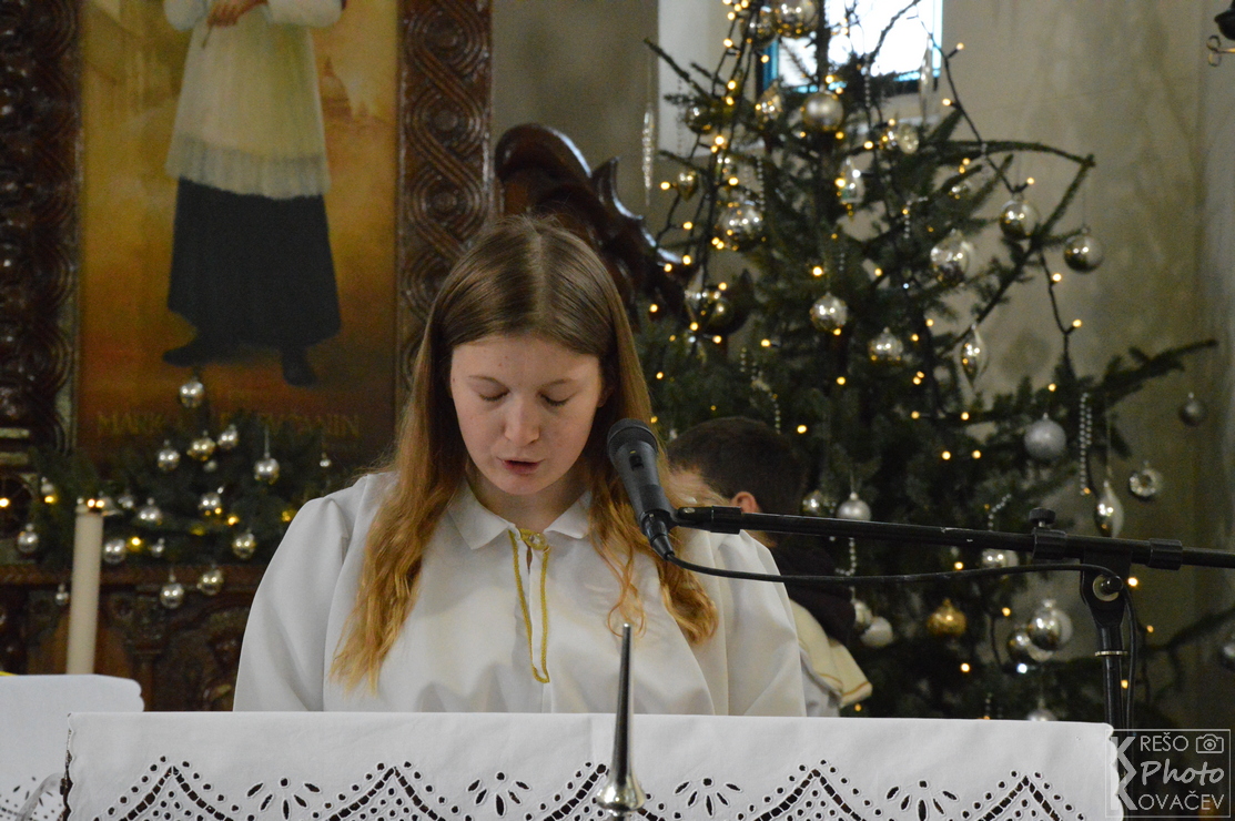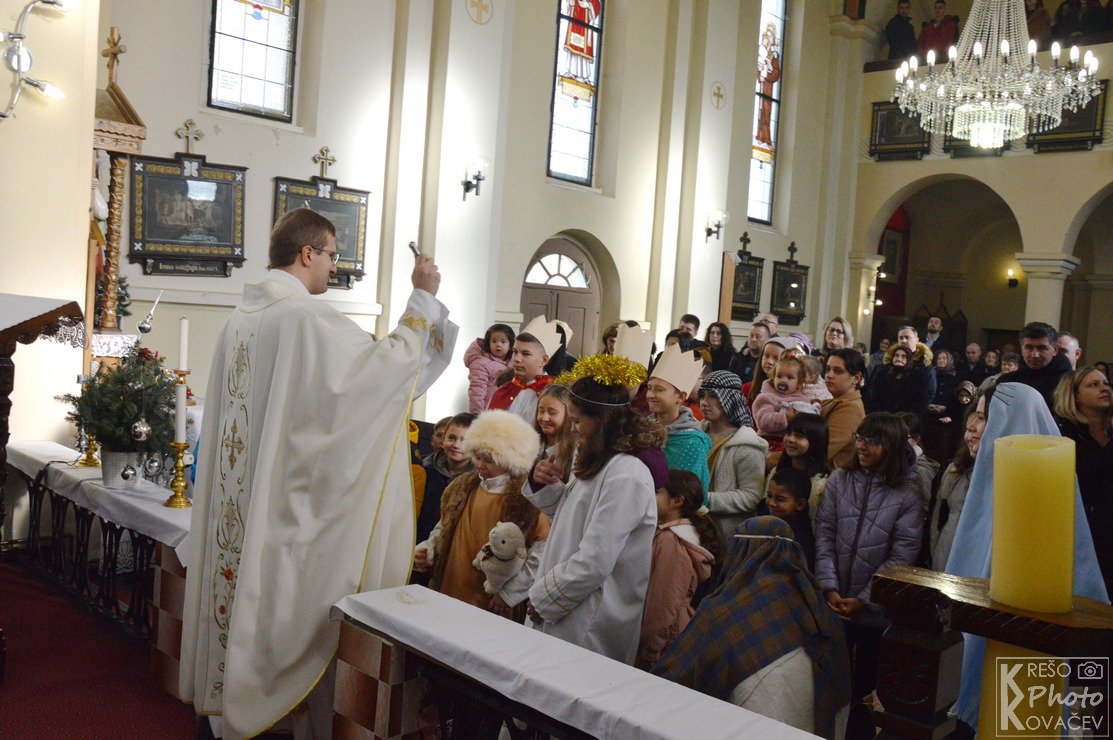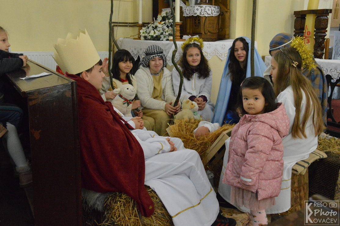 Misno slavlje započelo je scenskim prikazom živih jaslica u organizaciji naših mladih i župnih animatorica. U živim jaslicama sudjeluju: kao pastiri Sofija Lovrak, Matija Barberic i Lorena Oršuš, kraljevi su Josip Žilić, Tomislav Dergez i Karlo Tomrlin, anđeli su Martina Žilić i Gabriela Tomašek, Josip je Ivan Marijanović, a Marija je Anamarija Barberic.