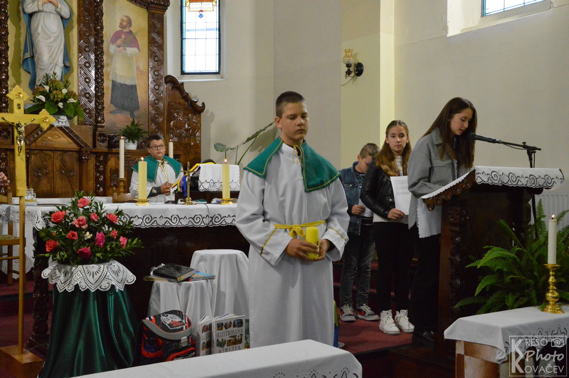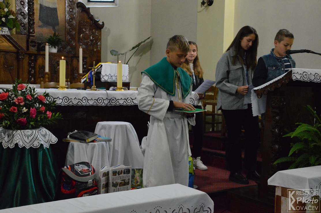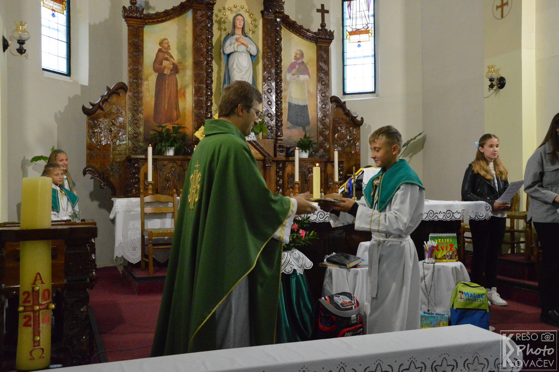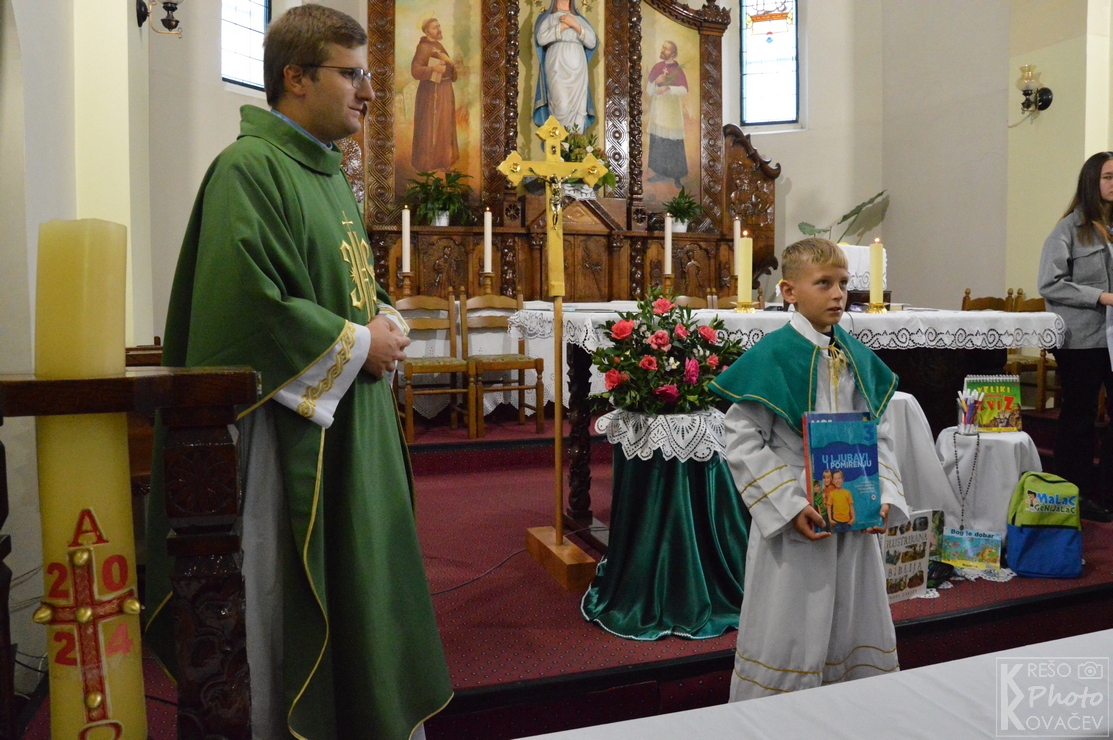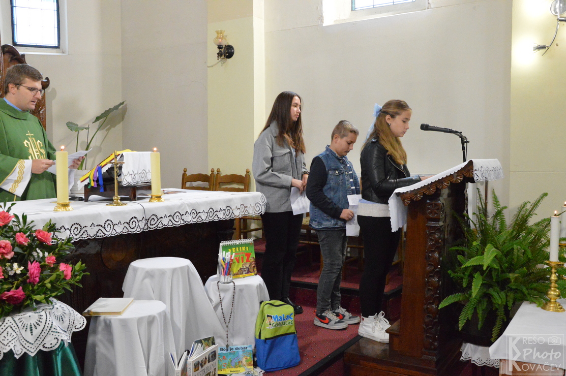 Započela je nova školska, vjeronaučna, ali i nova pastoralna godina – nove priprave za sakramente Prve Pričesti, Krizme, župne kateheze, susreti za mlade, probe zborova itd. Na sva ta naša nova zajednička nastojanja u nedjelju 15. rujna u 09:30 sati zazvali smo darove Duha Svetoga. Tu su nove knjige, neispisane bilježnice i dobre nakane da ove godine postignemo još bolji uspjeh i to ne samo u znanju, nego i u vladanju. Započeo je jedan novi odsjek našeg života. Stoga zazivamo pomoć Odozgor. Pomoć Duha Svetoga da nam ova školska i vjeronaučna godina bude ispunjena radošću, zajedničkim druženjem i skupljanjem plodova znanja koji će nam u životu itekako dobro doći. Naša molitva, na početku nove školske godine, neka bude jednostavna: Gospodine, otvori mi uši da budem poslušan tebi i svima koji mi žele dobro na mom životnom putu i u školi života. Amen.