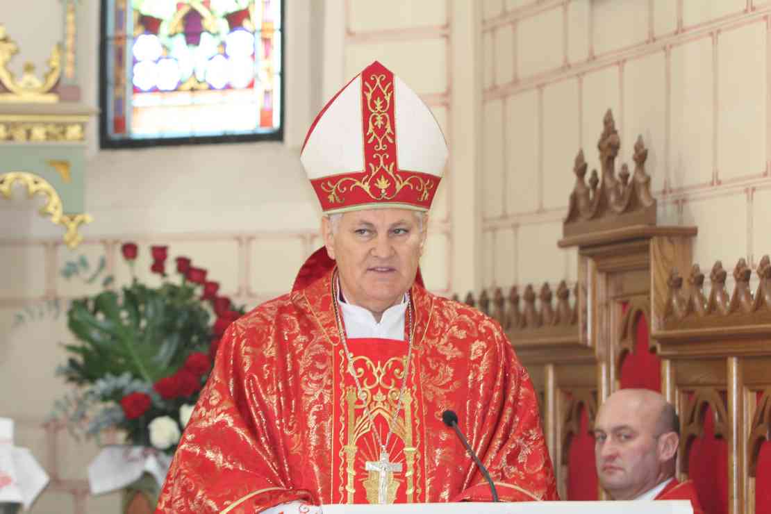Iz dubine srca pozdravljam Vas oče biskupe Vlado, biskupe sisački. Radujemo se što se baš vi danas ovdje s nama, što ćete predslaviti ovu misu i uputit nam svoju propovijed. Biskup Vlado Košić rođen je 20. svibnja 1959. godine u Varaždinu, od roditelja Ivana i Marte Košić r. Dombaj. Kršten je 31. svibnja 1959. u crkvi sv. Petra i Pavla u Petrijancu s krsnim imenom Vladimir Ivan. Odrastao je u mjestu Družbincu, u župi Petrijanec. Pastoralno je djelovao kao kapelan u Karlovcu i u Zagrebu – Španskom te kao župnik Hrastovice i Petrinje u vrijeme Domovinskog rata, kad i sam kao prognanik sa svojim župljanima živi u petrinjskoj filijali u Mošćenici u kontenjeru, uz samu crtu razdvajanja s okupiranim područjem. Od 1995. godine radi kao asistent pri Katedri dogmatske teologije na Katoličkom bogoslovnom fakultetu Sveučilišta u Zagrebu, gdje je 23. lipnja 1997. obranio doktorsku rad pod vodstvom prof. dr. sc. Ivana Goluba. Papa Ivan Pavao II. imenovao ga je 29. prosinca 1998. pomoćnim biskupom zagrebačkim te je 6. veljače 1999. zajedno s mons. Josipom Mrzljakom u zagrebačkoj katedrali zaređen za biskupa. 5. prosinca 2009. papa Benedikt XVI. bulom „Antiquam fidem“ ponovno je uspostavio staru i drevnu Sisačku biskupiju te Vladu Košića imenovao prvim sisačkim biskupom. Dana 6. veljače 2010. preuzeo je vodstvo Sisačke biskupije. Od tada do danas hrabrošću crkvenog pastira vodi njemu povjereni narod, aktivan je na polju dijaloga i ekumenizma, istine protiv laži, zalaže se za branitelje, aktivan je na polju crkvenog socijalnog nauka, vrlo je aktivna njegova zaklada za stipendije djeci i mladima kao i zaklada za pomoć brojnim obiteljima. Pred kojih mjesec dana otvorili ste i prvu katoličku osnovnu školu u Sisku, želimo vam uspjeha da uskoro ostvarite svoju želju oko otvaranja prve katoličke gimnazije. Vama je Oče biskupe itekako poznata župa Kalinovac; naš prof. Ivan Golub bio vam je mentor u vašem znanstvenom djelovanju, naš prof. Đuro Zalar bio vam je jedan od prethodnika u hrastovičkoj župi, a naš mons. Dario Paviša bio je kapelan u vašoj biskupiji prije nego je upućen u crkvenu diplomaciju. Dobro došli dragi biskupe! Primite sada naš mali dar dobrodošlice koji vam predaju naši ministranti.
