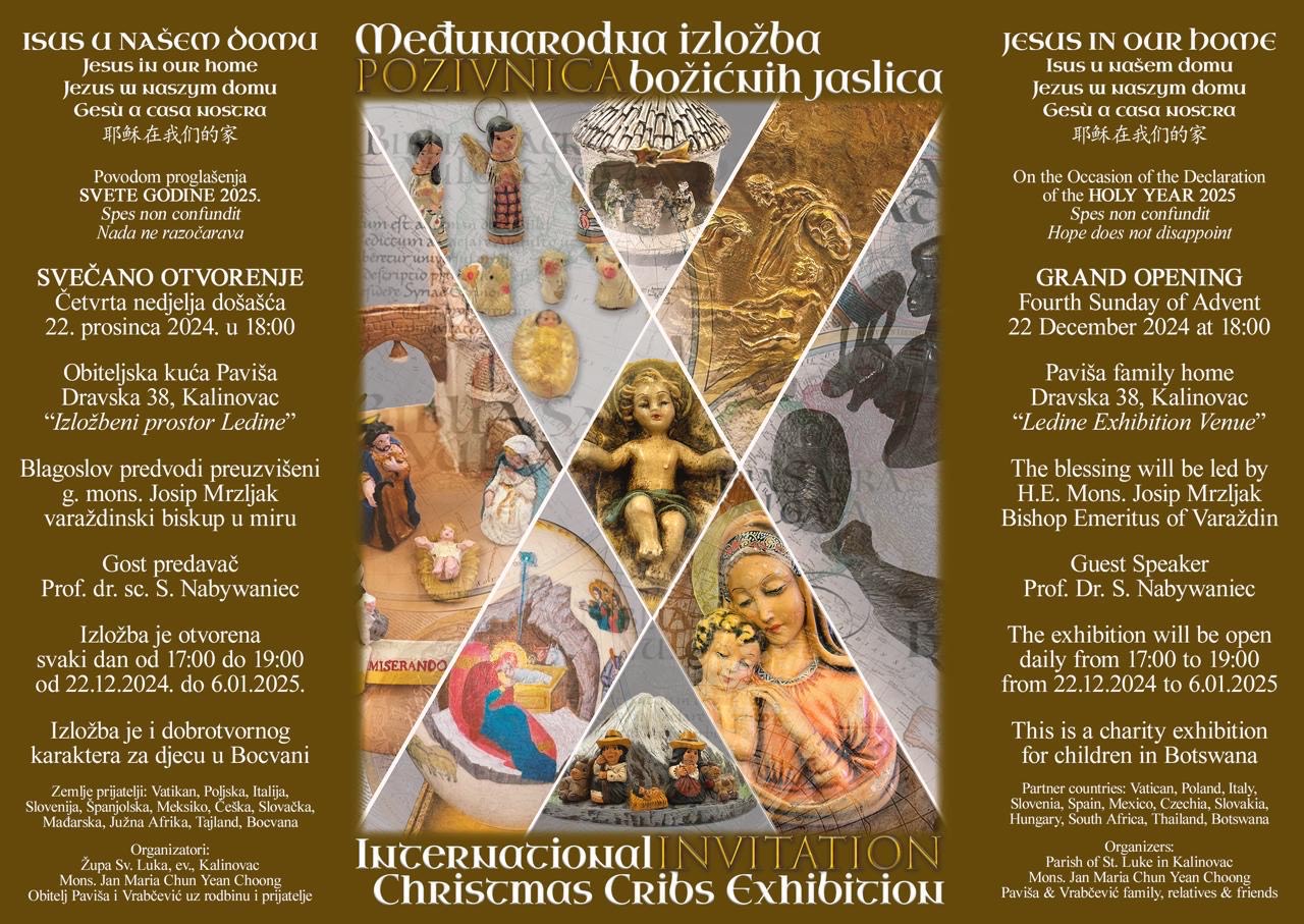 Kalnovečka OŠ Ivan Lackovic Croata uključila se u međunarodnu izložbu jaslica “Isus u našemu domu” izradim oko 20 jaslica, koje su izradile učenici svih razreda. 9. prosinca ove godine mons. Dario Paviša preuzeo je jaslice. Srdačno zahvaljujemo učenicima i vjeroučiteljici Viktoriji Hrženjak Matoš i ravnateljici Mirjani Bazijanec na suradnji i uključenju u ovaj božićni projekt. Također u međunarodnu izložbu jaslica uključio se i dječji vrtić Bubamara iz Kalinovca gdje su djeca izradili jaslice od prirodnog materijala. Preuzeo ih je mons. Dario Pavisa 13. prosinca od ravnateljice Ivane Biruš te i njima zahvaljujemo za lijepu suradnju u ovom projektu. 22.prosinca ove godine u nedjelju biti će u 18 sati održano otvorenje međunarodne izložbe jaslica pod imenom “Isus u našem domu”, povodom proglašenja Svete godine 2025. Izložba će biti otvorena u obiteljskoj kući Paviša, “Izložbeni prostor Ledine” u Kalinovcu. Gost predavač će biti prof. Stanislaw Nabywaniec iz Poljske sa Sveučilišta Rzeszowski. Organizatori izložbe su: župa Kalinovac, mons. Dario i mons. Jan koji su za ovu priliku prikupili jaslice iz više zemalja svijeta: Vatikan, Poljska, Italija, Slovenija, Španjolska, Meksiko, Češka, Slovačka, Mađarska, Južna Afrika, Tajland, Bocvana. Izložba je doborotvornog karaktera za djecu u Bocvani i može se razgledati svakog dana od 22.prosinca do 06.siječnja 2025. u vremenu od 17.00 do 19.00 sati. Srdačno vas pozivamo: dođite na otvorenje izložbe!