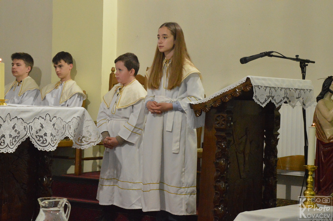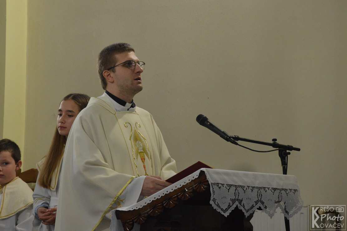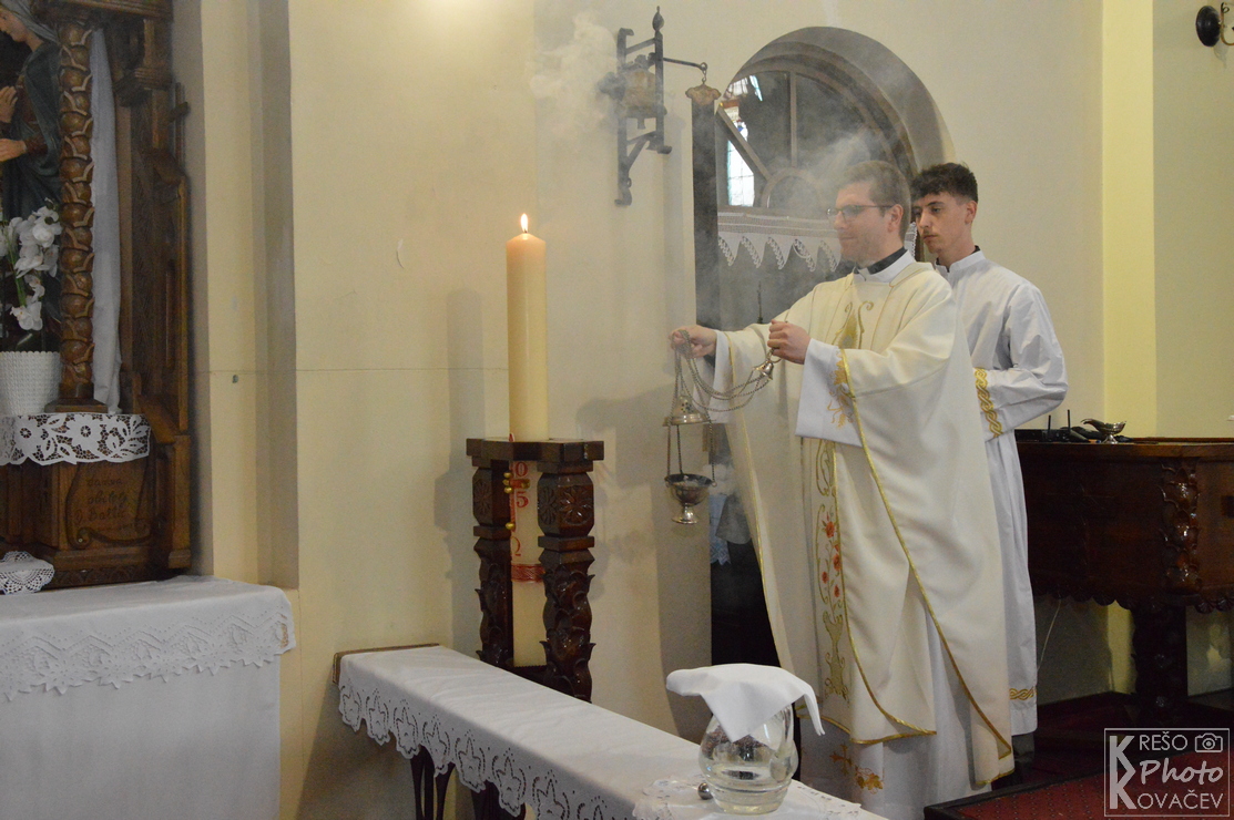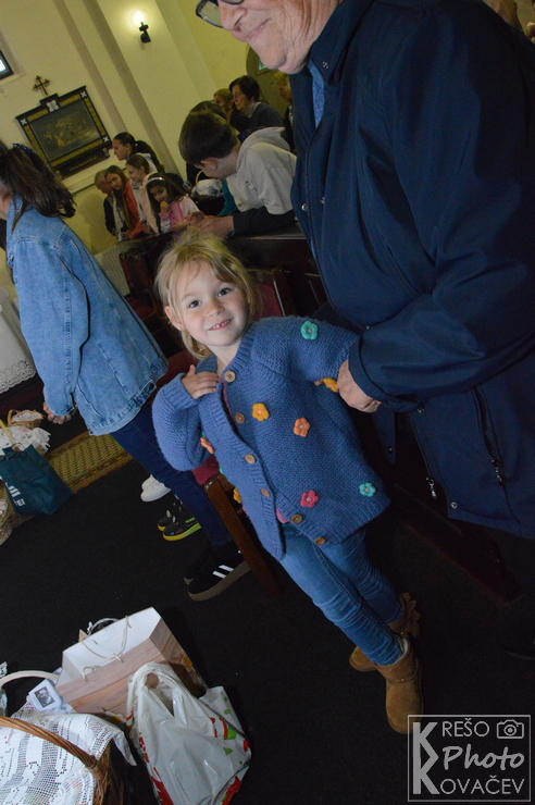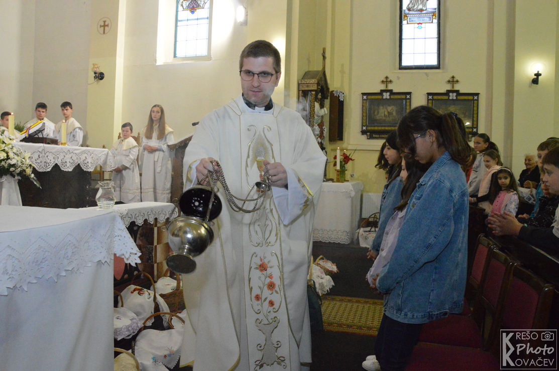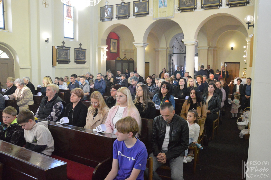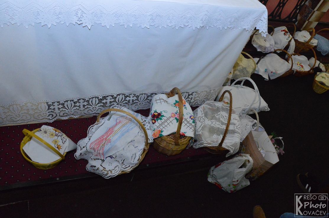 Svečanost Velike subote, u našoj župi, u jutarnjim je satima započela izlaganjem Presvetoga na pokrajnjem oltaru. Kroz cijeli dan mnoštvo je ljudi posjećivalo i bdjelo nad Isusovim grobom u župnoj crkvi. Večernji su obredi počeli u 18:00 službom svjetla, ispred crkve župnik je blagoslovio oganj i na njemu zapalio krsnu svijeću koju su unijeli u crkvu i proširili svjetlo Kristovo na svijeće vjernika. Nakon toga župnik Ivica Gladoić je blagoslovio novu uskrsnu sviječu, uslijedila je služba riječi koja je završila pjesmom Slava Bogu na visini s kojom su se upalila svjetla, svijeće i orgulje. Nakon krsne službe, gdje je župnik blagoslovio vodu i obnovili smo krsna obećanja, uslijedila je euharistija. Pred kraj mise blagoslovljena je hrana, cilj je blagoslova zahvaliti se na onome što smo donijeli u košari i na svemu onome što imamo. Blagoslovljena hrana tradicionalno se konzumira na večeri poslije mise i na Uskršnje jutro.