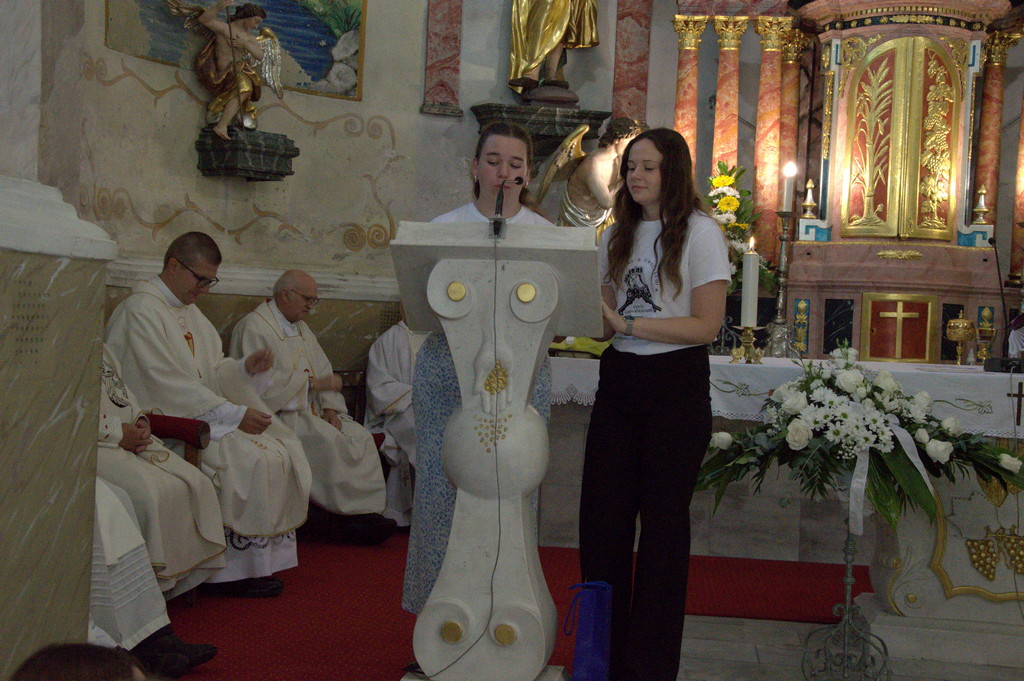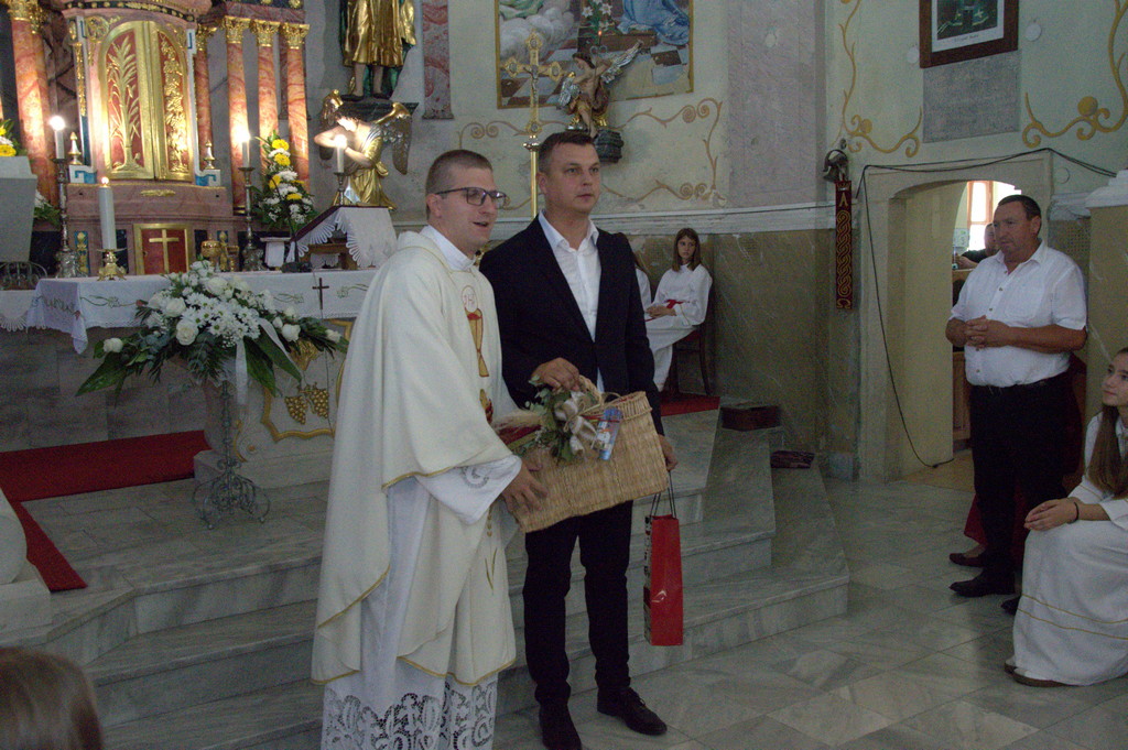 Od srca zahvaljujem za organizaciju i sponzorstvo današnjeg slavlja, i ovoga što nas čeka sada poslije: najprije mojim roditeljima, pa mojoj sestri Mariji i šogoru Matiji, mojoj baki Ivki, mojoj teti Snježani i sestrični Petri i cjeloj obitelji Glavan i Slunjski, dragim rođacima Darinki i Vladimiru Milavcu, krsnim kumovima Draženu i Sanji Lukaček, kumu Davidu, kumovima Ružici i Darku Šepši i mojem kumčetu Valentinu, mojim predragim i uvijek tu susjedima Stanku, Marici, Antunu, Davidu, Pauli i Petru Bačan, prijatelju i susjedu Tihomiru Krfogcu. Ovime vam zahvaljujem ne samo za danas nego i za proteklih deset godina, ali i za sve one godine školovanja kada ste me od srca i izdašno materijalno pomagali u mom školovanju, ali i svih ovih godina. Hvala za današnji dan našoj dragoj Općini Petrijanec i našem načelniku g. Željku Posavcu, kojega ovdje od srca pozdravljam i zahvaljujem na bezuvjetnoj pomoći, kao i našem dragom već spomenutom župniku. Hvala mom dragom prijatelju vlč. Dominiku Cestaru župniku u Klenovniku, našem današnjem propovjedniku kojemu sam propovijedao na mladoj misi ovdje 2022. godine. Od srca hvala vama mojim župljanima župe Budrovac i župe Kalinovac, kojih vas danas ovdje ima oko 200, koji ste došli autobusima ili vlastitim prijevozom, hvala malim zborašima iz Kalinovca i ministrantima i KUD-u Kalinovac. Hvala vam dragi moji župljani na svoj ljubavi koju imate prema meni.