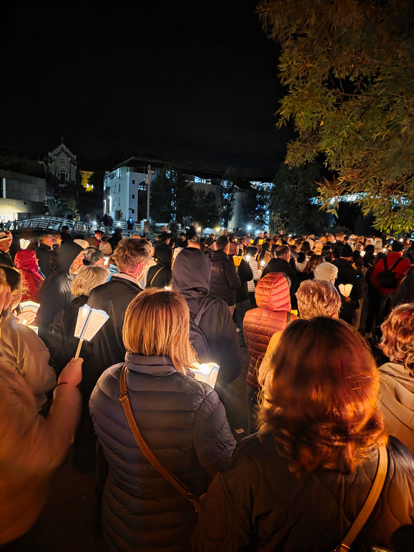 Nekim nevjerojatnim, sasvim neplaniranim i meni nedokučivim spletom okolnosti, ŽENA BROJ JEDAN, KUMOVI BROJ X i ja bijasmo danas odabrani između tisuća i tisuća hodočasnika da pjevamo i molimo na glavnoj večernjoj procesiji sa svijećama, pred oko 20.000 hodočasnika.