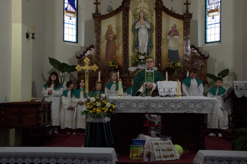 Započela je nova školska, vjeronaučna, ali i nova pastoralna godina – nove priprave za sakramente Prve Pričesti, Krizme, župne kateheze, susreti za mlade, probe zborova itd. Na sva ta naša nova zajednička nastojanja u nedjelju 05. listopada u 11.00 sati zazvali smo darove Duha Svetoga. Tu su nove knjige, neispisane bilježnice i dobre nakane da ove godine postignemo još bolji uspjeh i to ne samo u znanju, nego i u vladanju. Započeo je jedan novi odsjek našeg života. Stoga zazivamo pomoć Odozgor. Pomoć Duha Svetoga da nam ova školska i vjeronaučna godina bude ispunjena radošću, zajedničkim druženjem i skupljanjem plodova znanja koji će nam u životu itekako dobro doći. Naša molitva, na početku nove školske godine, neka bude jednostavna: Gospodine, otvori mi uši da budem poslušan tebi i svima koji mi žele dobro na mom životnom putu i u školi života. Amen.