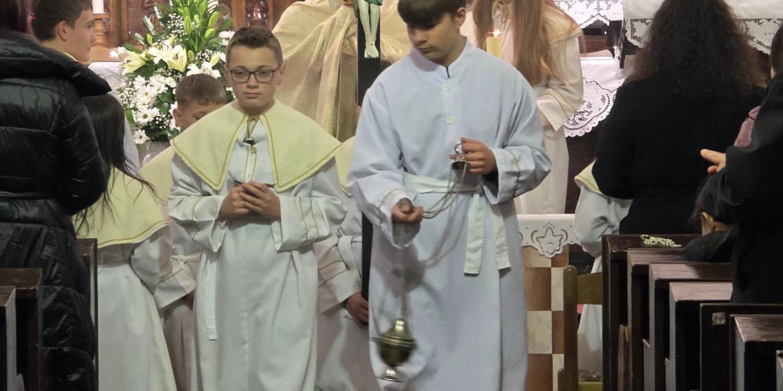 Vazmeno trodnevlje počelo je na Veliki četvrtak, tada smo slavili misu Večere Gospodnje, prisjetili smo se Isusove posljednje večere na kojoj je ustanovio svetu misu, svećenički red i zapovijed o bratskoj ljubavi. U župnoj crkvi misu je predvodio naš župnik Ivica. Nakon sviranja i pjevanja Slava Bogu na visini ugašena su sva zvona u crkvi koja miruju do Vazmenog bdijenja. U obredu pranja nogu, kao apostoli, sudjelovali su ministranti i djeca. Misa je završila prijenosom Presvetog i pjevanjem Usta moja. Nakon mise održana je pobožnost Getsemanske ure.