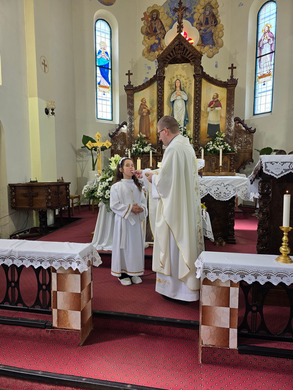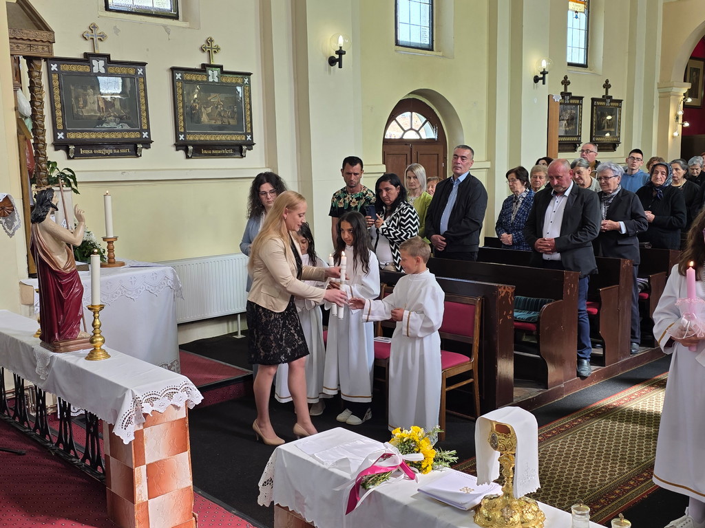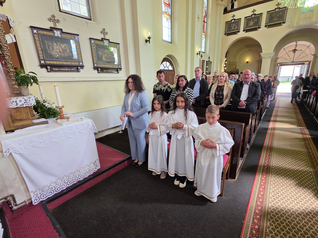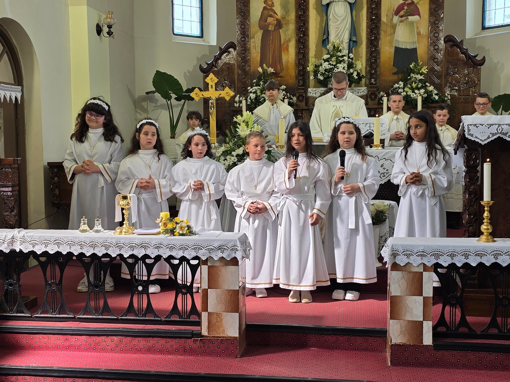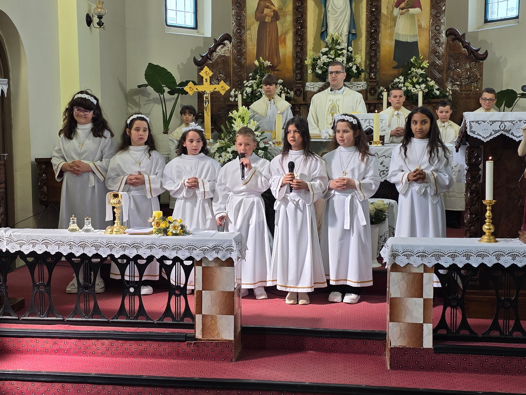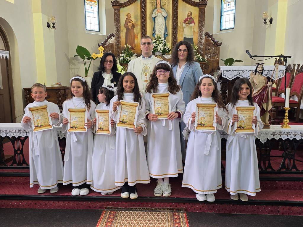 U nedjelju 12. travnja 2026.u našoj župi u Župnoj crkvi Uznesenja Blažene Djevice Marije bila je svečanost dijeljenja sakramenta prve svete pričesti pristupilo je 7 djece iz naše župe: Ivan Žilić, Veronika i Bojana Oršoš, Marija Magdalena, Antonela i Matea Hrlić i Leona Lovreković Oni su se tijekom čitave školske i vjeronaučne godine pripremali za ovaj sakrament na školskom i župnom vjeronauku (katehezi) pripremili su ih vlč. Ivica Gladoić i vjeroučiteljica Marina Barberic. i Gabrijela Barberic. a pjevao je dječji zbor sa orguljašicom Anamrijom Barberic-.U petak 10. travnja u našoj župi bila je sveta ispovijed za prvopričesnike, njihove roditelje, kumove i druge. Tada su naši ovogodišnji prvopričesnici po prvi puta pristupili i sakramentu pomirenja ili svete ispovijedi.